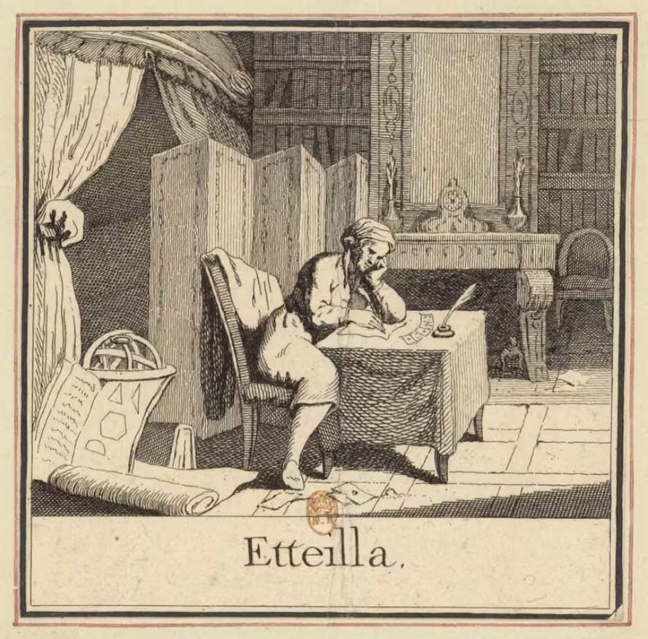 Pues fue un hombre francés llamado Etteilla (1738-91) era el seudónimo de Jean-Baptiste Alliette, un ocultista francés quien tuvo un rol esencial en el desarrollo esotérico del Tarot. En sus orígenes el Tarot se consideraba un simple juego de cartas, y las barajas que existían no tenían otro valor más que el de una baraja. Este francés en 1785 escribió «Manière de se récréer avec le jeu de cartes nomées Tarots», el primer libro dedicado a la adivinación a través del Tarot, también escribió otros libros, uno de ellos dedicado a relacionar el Tarot, la Astrología y los Elementos.